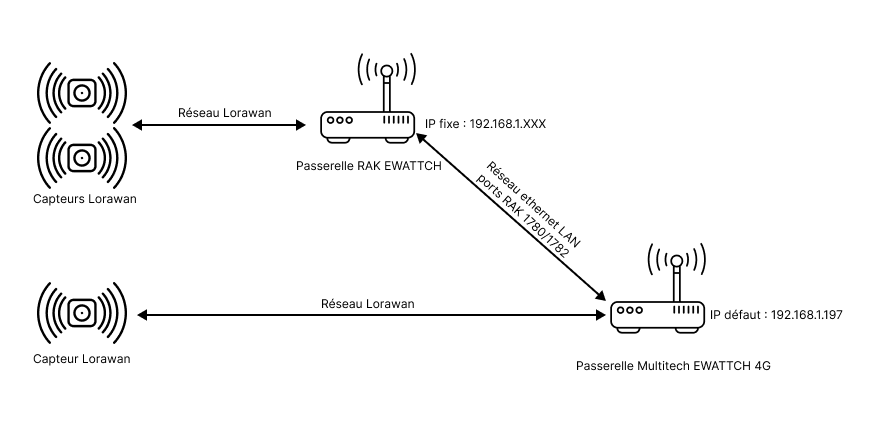 - Si des RAK sont présentes sur le réseau, autoriser les adresses MAC ou IP des RAK à communiquer vers les passerelles EWATTCH par les ports 1780 et 1782 (adresses MAC ou IP)