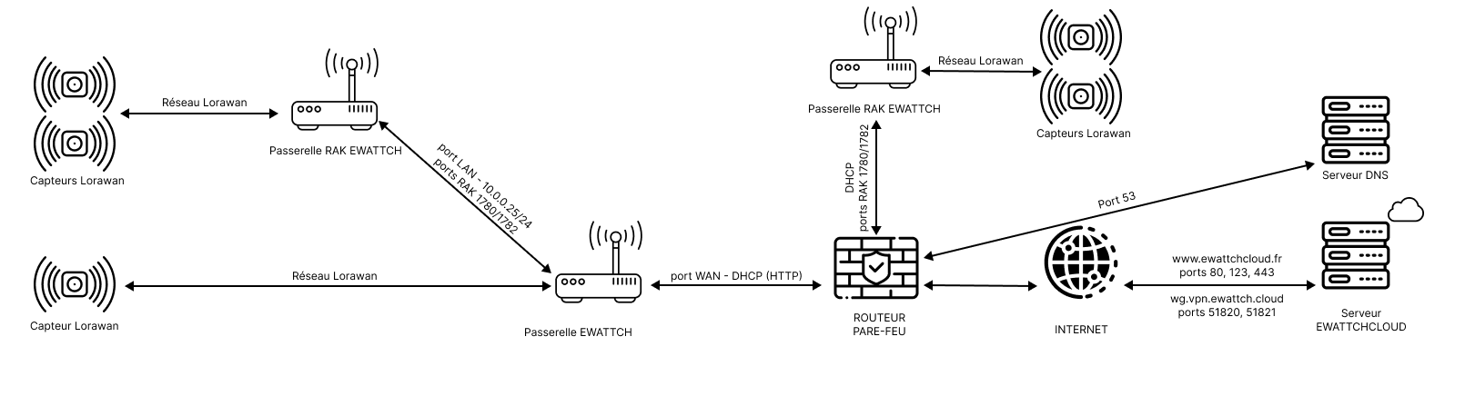 - Les gateways doivent pouvoir accéder au domaine www.ewattchcloud.fr